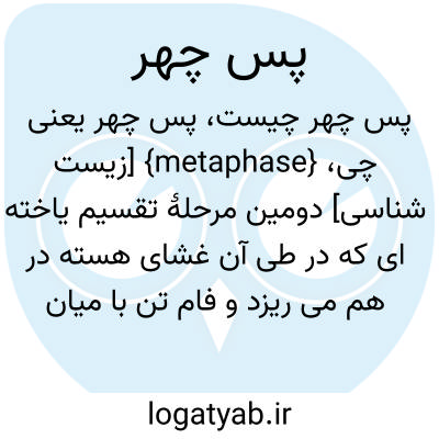 {metaphase} [زیست شناسی] دومین مرحلۀ تقسیم یاخته ای که در طی آن غشای هسته در هم می ریزد و فام تن با میان پارها (centromere ) به رشته های دوک (spindle ) می چسبند