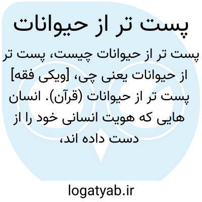 [ویکی فقه] پست تر از حیوانات (قرآن). انسان هایی که هویت انسانی خود را از دست داده اند، و به تعبیر قرآن پست تر از حیوانات شده اند، جایگاهی جز آتش ندارند.