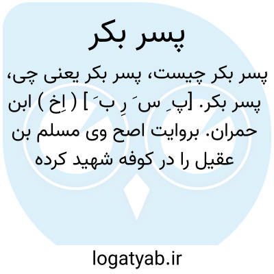 پسر بکر. [پ ِ س َ رِ ب َ ] ( اِخ ) ابن حمران. بروایت اصح وی مسلم بن عقیل را در کوفه شهید کرده سرش را به پیش عبیداﷲبن زیاد حاکم کوفه برد و تنش را از بام قصر بزیر انداخت. ( روضةالشهداء از حبیب السیر جزء 1 از ج 2 در حالات امام حسین علیه السلام ).