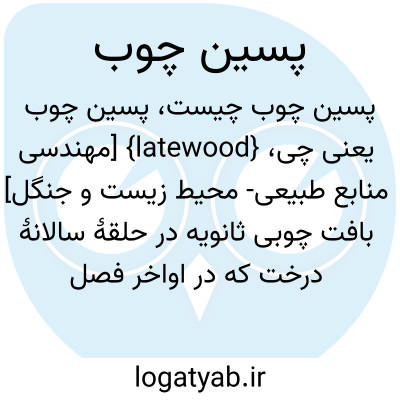 {latewood} [مهندسی منابع طبیعی- محیط زیست و جنگل] بافت چوبی ثانویه در حلقۀ سالانۀ درخت که در اواخر فصل رویش شکل می گیرد و یاخته های آن در قیاس با یاخته های رویش اوایل فصل کوچک و تیره است و قطر کمتر و سختی و چگالی بیشتری دارد متـ. چوب تابستانه summer wood چوب...