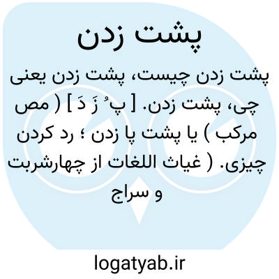 پشت زدن. [ پ ُ زَ دَ ] ( مص مرکب ) یا پشت پا زدن؛ رد کردن چیزی. ( غیاث اللغات از چهارشربت و سراج و مصطلحات ).