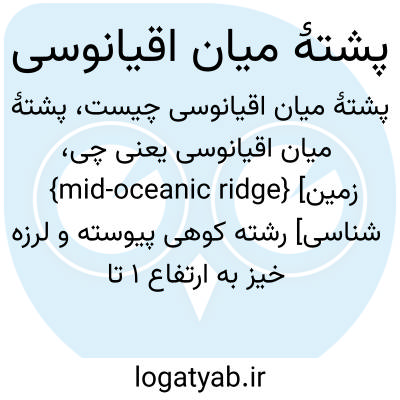 {mid-oceanic ridge} [زمین شناسی] رشته کوهی پیوسته و لرزه خیز به ارتفاع 1 تا 3 و پهنای 1500 کیلومتر، در وسط اقیانوس