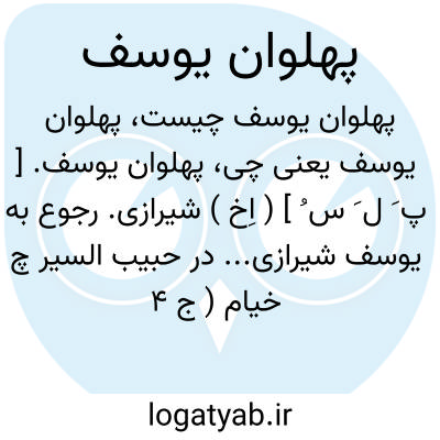 پهلوان یوسف. [ پ َ ل َ س ُ ] ( اِخ ) شیرازی. رجوع به یوسف شیرازی... در حبیب السیر چ خیام ( ج 4 ص 89 ) شود.