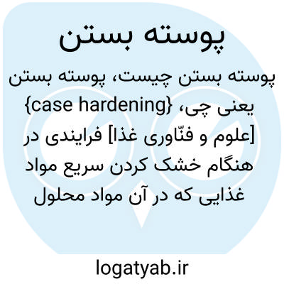 {case hardening} [علوم و فنّاوری غذا] فرایندی در هنگام خشک کردن سریع مواد غذایی که در آن مواد محلول در آب به سطح مواد غذایی منتقل می شود و در نتیجۀ تشکیل پوسته سرعت خشک شدن کاهش می یابد