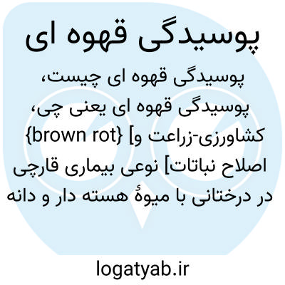 {brown rot} [کشاورزی-زراعت و اصلاح نباتات] نوعی بیماری قارچی در درختانی با میوۀ هسته دار و دانه دار که نشانۀ بارز آن قهوه ای و چروکیده و سفت شدن میوه و خشکیدگی گل ها و زخم در شاخه است