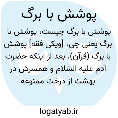 [ویکی فقه] پوشش با برگ (قرآن). بعد از اینکه حضرت آدم علیه السّلام و همسرش در بهشت از درخت ممنوعه خوردند و شرمگاهشان آشکار شد، برای پوشاندن آن از برگ درختان بهشتی استفاده می کردند.