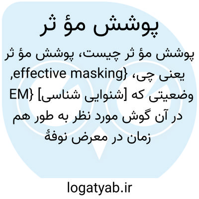 {effective masking, EM} [شنوایی شناسی] وضعیتی که در آن گوش مورد نظر به طور هم زمان در معرض نوفۀ پوششی و نشانک قرار می گیرد و نوفۀ پوششی برای پوشاندن نشانک کافی است