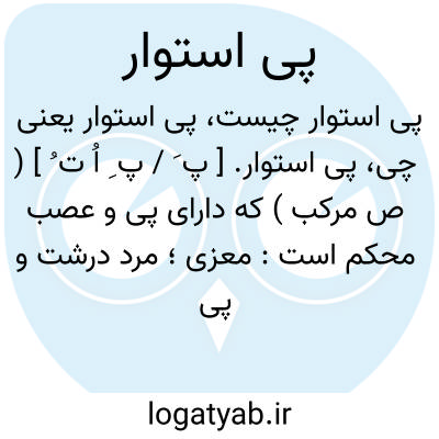 پی استوار. [ پ َ / پ ِ اُ ت ُ ] ( ص مرکب ) که دارای پی و عصب محکم است: معزی؛ مرد درشت و پی استوار. ( منتهی الارب ).