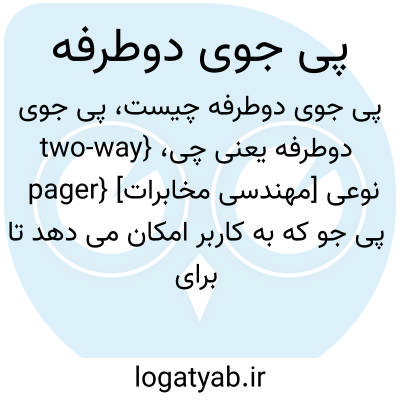{two-way pager} [مهندسی مخابرات] نوعی پی جو که به کاربر امکان می دهد تا برای فرستندۀ پیام اعلام وصول یا پاسخ بفرستد