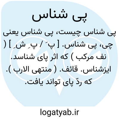 پی شناس. [ پ َ / پ ِ ش ِ ] ( نف مرکب ) که اثر پای شناسد. ایزشناس. قائف. ( منتهی الارب ). که ردّ پای تواند یافت. که ایز تواند بردارد.