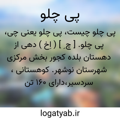 پی چلو. [ چ ِ ] ( اِخ ) دهی از دهستان بلده کجور بخش مرکزی شهرستان نوشهر. کوهستانی، سردسیر،دارای 160 تن سکنه. آب آن از چشمه و رودخانه محلی،محصول آنجا غلات و ارزن. شغل اهالی زراعت و گله داری و راه آن مالرو است. ( فرهنگ جغرافیایی ایران ج 3 ).