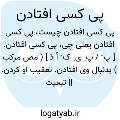 لغت نامه دهخدا پی کسی افتادن. [ پ َ / پ ِ ی ِ ک َ اُ دَ ] ( مص مرکب ) بدنبال وی افتادن. تعقیب او کردن. || تبعیت او کردن. پیروی او کردن.