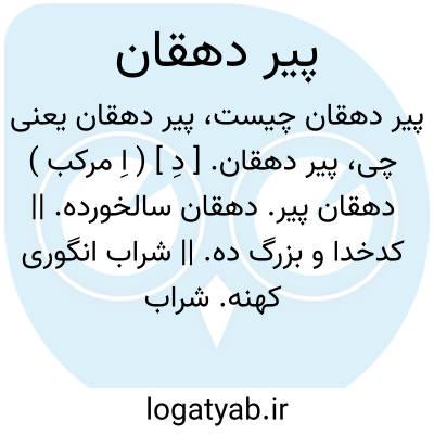 ( صفت ) ۱-دهقان پیر دهگان سالخورده. ۲- کدخدا بزرگ ده. ۳- شراب انگوری کهنه: هین جام رخشان در دهید آزاده را جان در دهید. آن پیر دهقان در دهیداز شاخ برنا ریخته. ( خاقانی )