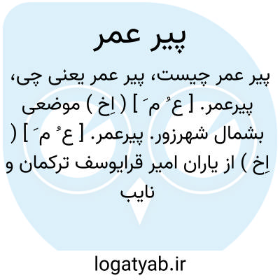 پیرعمر. [ ع ُ م َ ] ( اِخ ) از یاران امیر قرایوسف ترکمان و نایب وی. پیرعمر در جنگ این امیر با میرزا ابوبکر کرت شرکت داشته است. و نیز از جانب قرایوسف والی ارزنجان گشته. ( حبیب السیر چ خیام ج 3 ص 570 و 577 ).