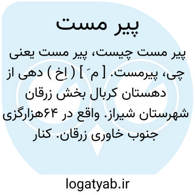 پیرمست. [ م َ ] ( اِخ ) دهی از دهستان کربال بخش زرقان شهرستان شیراز. واقع در 64هزارگزی جنوب خاوری زرقان. کنار راه فرعی بند امیربه سلطان آباد. جلگه، معتدل، مالاریائی. دارای 130 تن سکنه. آب آن از رود کر، محصول آنجا غلات و چغندر و شغل اهالی زراعت است. ( فرهنگ جغرافیایی ایران ج 7 ).