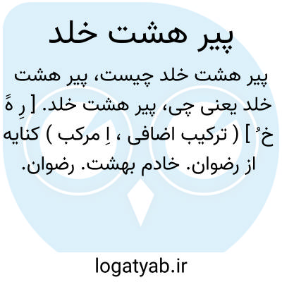 پیر هشت خلد. [ رِ هََ خ ُ ] ( ترکیب اضافی، اِ مرکب ) کنایه از رضوان. خادم بهشت. رضوان. ( آنندراج ).