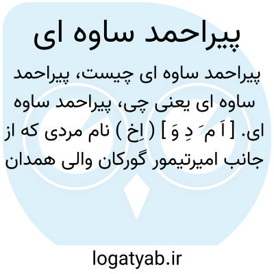 پیراحمد ساوه ای. [ اَ م َ دِ وَ ] ( اِخ ) نام مردی که از جانب امیرتیمور گورکان والی همدان و قم و کاشان و قزوین گردیده است. ( حبیب السیر چ خیام ج 3 ص 442 ).