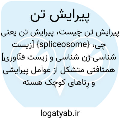 {spliceosome} [زیست شناسی-ژن شناسی و زیست فنّاوری] همتافتی متشکل از عوامل پیرایشی و رِناهای کوچک هسته ای که در فرایند پیرایش نقش دارد متـ. همتافت پیرایشی splicing complex