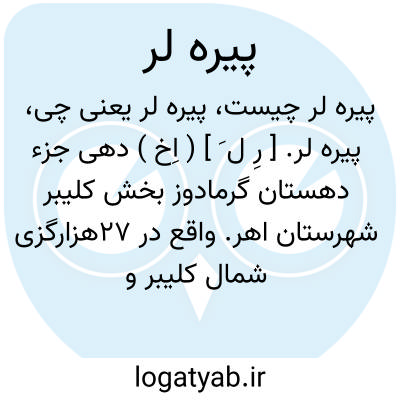 پیره لر. [ رِ ل َ ] ( اِخ ) دهی جزء دهستان گرمادوز بخش کلیبر شهرستان اهر. واقع در 27هزارگزی شمال کلیبر و 27هزارگزی شوسه اهر به کلیبر. کوهستانی، معتدل، مایل بگرمی. دارای 106 تن سکنه. آب آن از رودخانه سلین و چشمه. محصول آنجا غلات. شغل اهالی زراعت و گله داری. صنایع دستی فرش و گلیم بافی و راه آن مالرو است. ( فرهنگ جغرافیایی ایران ج 4 ).