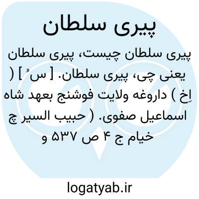 پیری سلطان. [ س ُ ] ( اِخ ) داروغه ولایت فوشنج بعهد شاه اسماعیل صفوی. ( حبیب السیر چ خیام ج 4 ص 537 و 579 ).