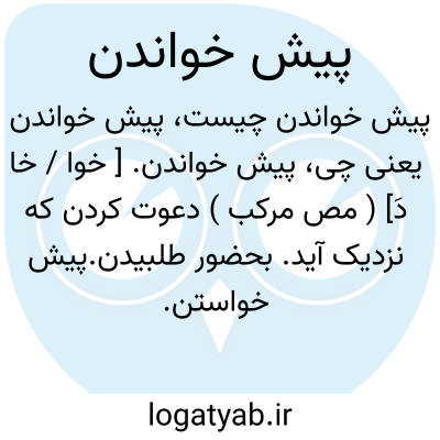 ( مصدر ) دعوت کردن کسی که نزدیک آید بحضور طلبیدن پیش خواستن: پراندیشه دل گیو را پیش خواند و زان خواب چندی سخنها براند. ( شا. لغ. ) یا پیش خود خواندن. نزد خود خواندن پیش خود احضار کردن: چون پیش ابراهیم شدند برخاست و ایشانرا پیش خود خواند و با همدیگر بنشستند.