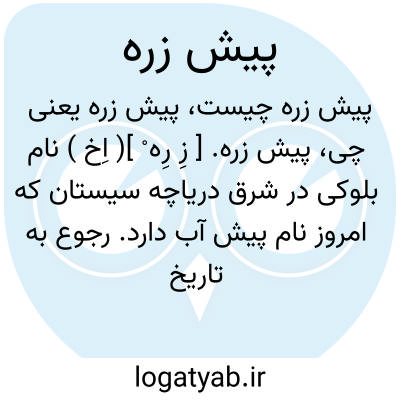 پیش زره. [ زِ رِه ْ ]( اِخ ) نام بلوکی در شرق دریاچه سیستان که امروز نام پیش آب دارد. رجوع به تاریخ سیستان صص 297- 298 و 326، 336 - 355، 373، 377، 390، 401، 403، 415 شود.