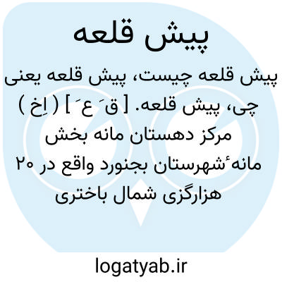 پیش قلعه. [ ق َ ع َ ] ( اِخ ) مرکز دهستان مانه بخش مانه ٔشهرستان بجنورد واقع در 20 هزارگزی شمال باختری بجنورد و 2 هزار گز جنوب مالرو عمومی محمد آباد به دشتک. جلگه، گرمسیر، دارای 1105 تن سکنه. آب آن از رودخانه اترک محصول آنجا غلات و تریاک و میوه جات. شغل اهالی آن زراعت و قالیچه بافی، راه آنجا مالروست و 3 باب دکان و دبستان دارد. ( فرهنگ جغرافیائی ایران ج 9 ).