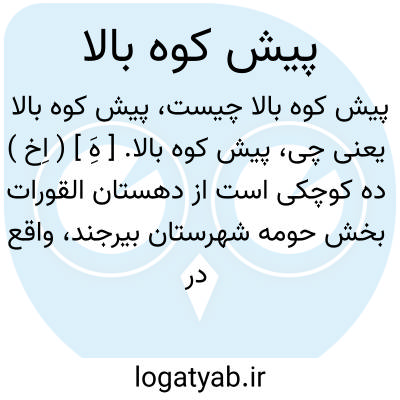پیش کوه بالا. [ هَِ ] ( اِخ ) ده کوچکی است از دهستان القورات بخش حومه شهرستان بیرجند، واقع در 40هزارگزی شمال باختری بیرجند. کوهستانی، معتدل، دارای 11 تن سکنه. مزرعه پیشکوه پائین جزو این ده است. ( فرهنگ جغرافیائی ایران ج 9 ).