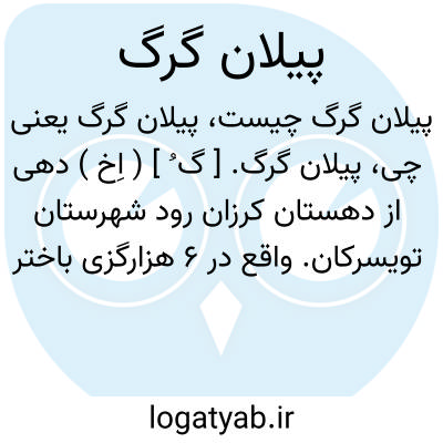 پیلان گرگ. [ گ ُ ] ( اِخ ) دهی از دهستان کرزان رود شهرستان تویسرکان. واقع در 6 هزارگزی باختر تویسرکان و 2 هزارگزی راه شوسه تویسرکان بکرمانشاه. دامنه. سردسیر. دارای 800 نفر سکنه. آب آن از رودخانه کرزان رود و قنات. محصول آنجا غلات دیم و صیفی و انگور و گردو و قلمستان. شغل اهالی آن زراعت و گله داری. راه آنجا مالروست. ( فرهنگ جغرافیائی ایران ج 5 ).