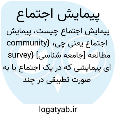 {community survey} [جامعه شناسی] مطالعه ای پیمایشی که در یک اجتماع یا به صورت تطبیقی در چند اجتماع صورت می گیرد