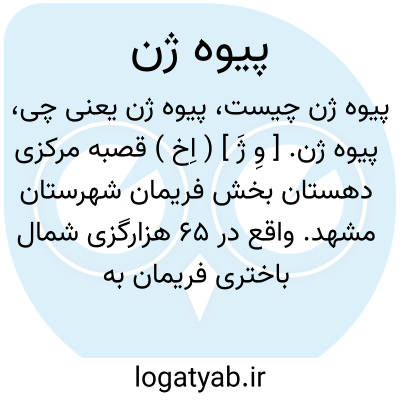پیوه ژن. [ وِ ژَ ] ( اِخ ) قصبه مرکزی دهستان بخش فریمان شهرستان مشهد. واقع در 65 هزارگزی شمال باختری فریمان به 6 هزارگزی شمال شوسه عمومی تهران به مشهد، کوهستانی، معتدل. دارای 1919 تن سکنه. آب آنجا از قنات. محصول آن غلات و انواع میوه جات، شغل اهالی آن زراعت و گله داری و قالیچه و کرباس بافی، راه آن مالروست و دبستانی دارد. ( فرهنگ جغرافیائی ایران ج 9 ).