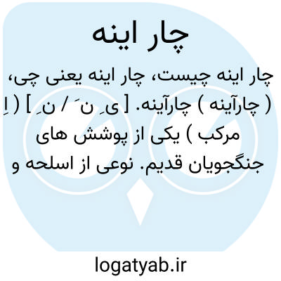 ( چارآینه ) چارآینه. [ ی ِ ن َ / ن ِ ] ( اِ مرکب ) یکی از پوشش های جنگجویان قدیم. نوعی از اسلحه و این عبارت از چهار پاره آهن پهن باشد که در زره بر سینه پیوند کنند. ( آنندراج ). نوعی از لباس جنگ که چهار تخت از آهن ساخته و در مخمل گرفته گرد پشت و سینه کشند. ( ناظم الاطباء ):