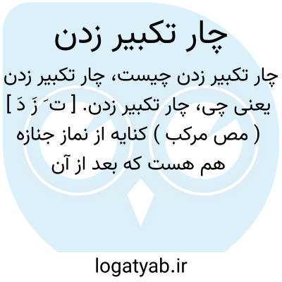 چار تکبیر زدن. [ ت َ زَ دَ ] ( مص مرکب ) کنایه از نماز جنازه هم هست که بعد از آن میت را وداع کنند. ( برهان ). نماز جنازه کردن زیرا که در نمازجنازه چهار تکبیر مقرر است. ( آنندراج ):