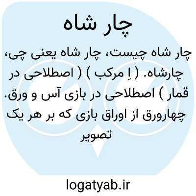 چارشاه. ( اِ مرکب ) ( اصطلاحی در قمار ) اصطلاحی در بازی آس و ورق. چهارورق از اوراق بازی که بر هر یک تصویر شاه نقش شده باشد. چار صورت شاه در بازی آس و دیگر بازیهای ورق.