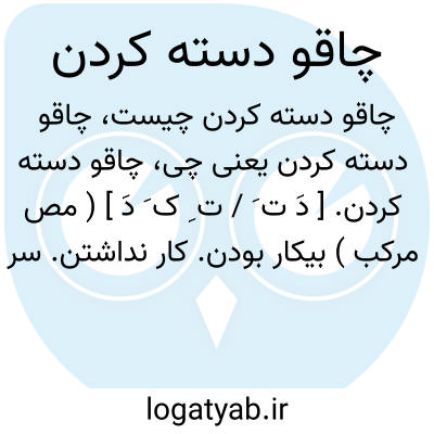 چاقو دسته کردن. [ دَ ت َ / ت ِ ک َ دَ ] ( مص مرکب ) بیکار بودن. کار نداشتن. سر بجیب فرو بردن. ( آنندراج ). غنچه خسپ بودن. ( آنندراج ). || در سرما گرم شدن را چمباتمه و بر پاشنه نشستن. ( امثال و حکم دهخدا ):