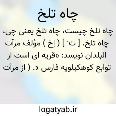 چاه تلخ. [ ت َ ] ( اِخ ) دهی است از دهستان لیراوی بخش دیلم شهرستان بوشهر که در 24 هزارگزی جنوب دیلم و 5 هزارگزی خاور دریا و شمال کوه بنگ واقع شده. جلگه، گرمسیر و مالاریائی است و 380 تن سکنه دارد. آبش از چاه، محصولش غلات شغل اهالی زراعت و راهش فرعی است. ( از فرهنگ جغرافیایی ایران ج 7 ).