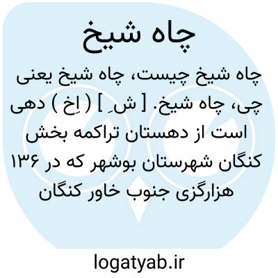 چاه شیخ. [ ش ِ ] ( اِخ ) دهی است از دهستان تراکمه بخش کنگان شهرستان بوشهر که در 136 هزارگزی جنوب خاور کنگان، کنار راه فرعی لار به گله دار واقع شده. جلگه، گرمسیر و مالاریائی است و 98 تن سکنه فارس و ترک دارد. آبش از قنات، محصولش غلات و انار، شغل اهالی زراعت است. ( از فرهنگ جغرافیایی ایران ج 7 ).