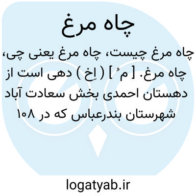 چاه مرغ. [ م ُ ] ( اِخ ) دهی است از دهستان احمدی بخش سعادت آباد شهرستان بندرعباس که در 108 هزارگزی خاور حاجی آباد و 5 هزارگزی شمال راه میناب به فارغان واقع شده. کوهستانی و گرمسیر است و 159 تن سکنه دارد.آبش از قنات، محصولش خرما و غلات، شغل اهالی زراعت وراهش مالرو است. ( از فرهنگ جغرافیایی ایران ج 8 ).