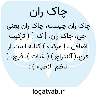 رسته اید از شهوت و از چاک ران.مولوی.|| کنایه است از دبر. ( آنندراج ) ( غیاث ). دبر. ( ناظم الاطبا ).، چاکران. ( اِخ ) از قراء و بلوک تورا و تونیان از بلوکات و مضافات هرات است. ( مرآت البلدان ج 1 ص 72 ).