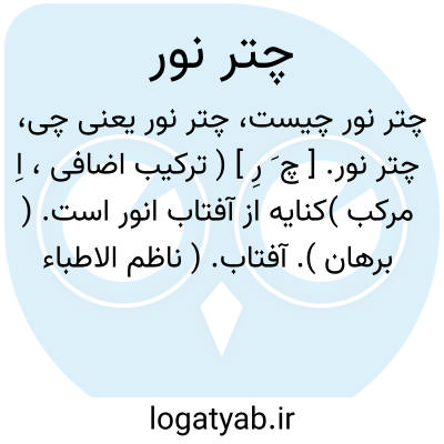 چتر نور. [ چ َ رِ ] ( ترکیب اضافی، اِ مرکب )کنایه از آفتاب انور است. ( برهان ). آفتاب. ( ناظم الاطباء ). رجوع به چتر روز و چتر زرین و چتر سحر شود.