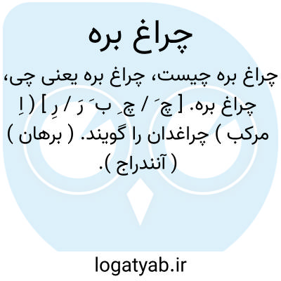 چراغ بره. [ چ َ / چ ِ ب َ رَ / رِ ] ( اِ مرکب ) چراغدان را گویند. ( برهان ) ( آنندراج ). چراغدان. ( ناظم الاطباء ). بعربی مشکوة خوانند. ( برهان ) ( آنندراج ) ( ناظم الاطباء ). چراغواره. چراخواره. جاچراغی. چراغدان. رجوع به چراخواره و چراغواره شود. || اسبی که دو دست را بلند کرده بر روی دو پا ایستد. ( ناظم الاطباء ). چراغ. چراغپا.
