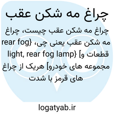 {rear fog light, rear fog lamp} [قطعات و مجموعه های خودرو] هریک از چراغ های قرمز با شدت نور کافی در عقب خودرو که در هوای مه آلود برای دیده شدن خودرو آن را روشن می کنند