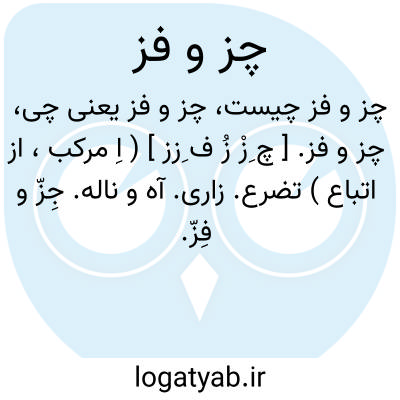 چز و فز. [ چ ِزْ زُ ف ِزز ] ( اِ مرکب، از اتباع ) تضرع. زاری. آه و ناله. جِزّ و فِزّ.
