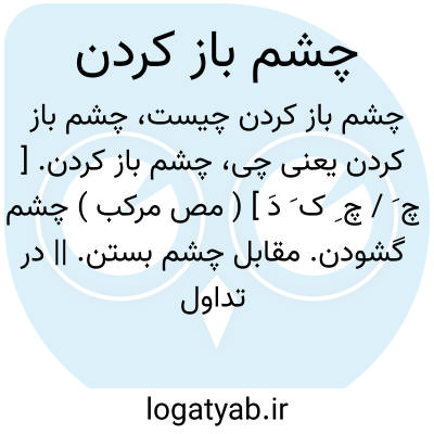 ( مصدر ) ۱ - گشودن چشم مقابل چشم بستن. ۲ - کسی یا چیزی را بدقت نگریستن. ۳ - بیدار شدن از خواب. ۴ - چشم رضا و محبت بکسی باز کردن.