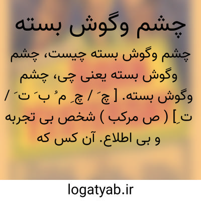 چشم وگوش بسته. [ چ َ / چ ِ م ُ ب َ ت َ / ت ِ] ( ص مرکب ) شخص بی تجربه و بی اطلاع. آن کس که سرد و گرم روزگار نچشیده و از حقایق امور سر در نیاورده است. نظیر کور و کر در تداول عامه. مقابل چشم وگوش باز.