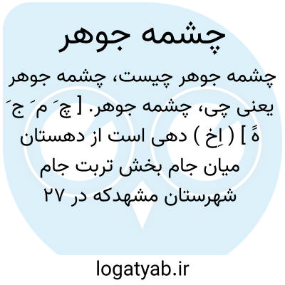 چشمه جوهر. [ چ َ م َ ج َ هََ ] ( اِخ ) دهی است از دهستان میان جام بخش تربت جام شهرستان مشهدکه در 27 هزارگزی شمال تربت جام و 6 هزارگزی باختر راه شوشه عمومی تربت جام به معدن چشمه گل واقع است. جلگه و هوایش معتدل است و 85 تن سکنه دارد. آبش از قنات. محصولش غلات، پنبه. شغل اهالی زراعت و مالداری و راهش مالرو است. ( از فرهنگ جغرافیائی ایران ج 9 ).