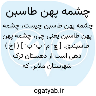 چشمه پهن طاسبندی. [ چ َ م َ پ َ ب َ ] ( اِخ ) دهی است از دهستان ترک شهرستان ملایر. که در 33 هزارگزی شمال باختری شهر ملایر و 3 هزارگزی باختر راه شوسه ملایر بهمدان واقع است. کوهستانی ومعتدل است و 233 تن سکنه دارد. آبش از چشمه. محصولش غلات و شغل اهالی زراعت. صنایع دستی زنان قالیبافی وراهش مالرو است. ( از فرهنگ جغرافیایی ایران ج 5 ).