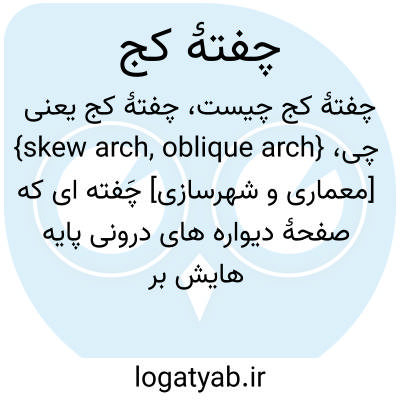 {skew arch, oblique arch} [معماری و شهرسازی] چَفته ای که صفحۀ دیواره های درونی پایه هایش بر صفحۀ نمای آن عمود نباشد