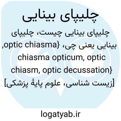 {optic chiasma, chiasma opticum, optic chiasm, optic decussation} [زیست شناسی، علوم پایۀ پزشکی] محلی که در آن اعصاب بینایی به صورت چلیپایی عبور می کنند