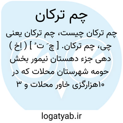 چم ترکان. [ چ َ ت ُ ] ( اِخ ) دهی جزء دهستان نیمور بخش حومه شهرستان محلات که در 10هزارگزی خاور محلات و 3 هزارگزی خاور راه شوسه دلیجان به خمین در کنار رودخانه لعل بار واقع است. محصولش غلات، پنبه و صیفی. شغل اهالی زراعت و راهش در تابستان ماشین رو است. ( از فرهنگ جغرافیایی ایران ج 1 ).